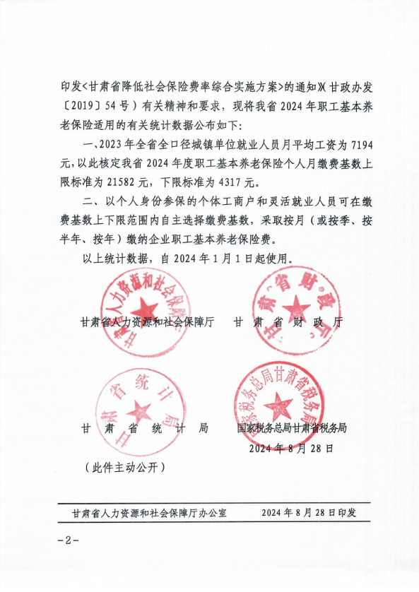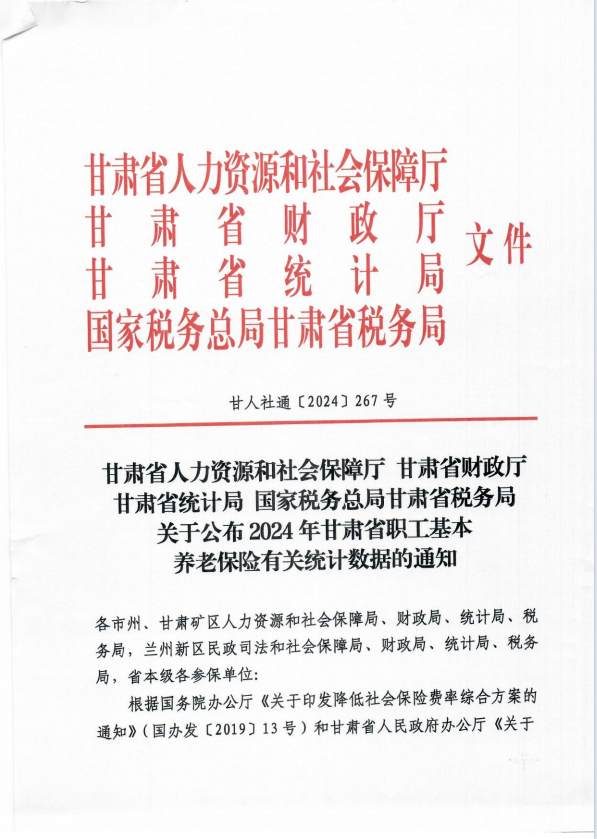 关于公布2024年甘肃省职工基本养老保险有关统计数据的通知